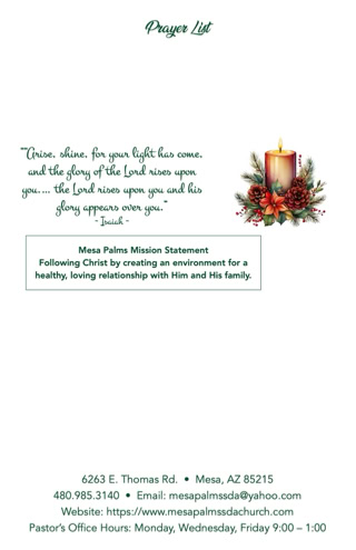 Mesa Palms sincerely apologizes for the absence of a digital copy of the bulletin this week. Rest assured, we will do our best to provide one next week.