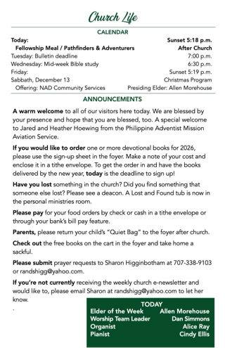 To preview this bulletin, click on either the right (>) or left (<) arrow icons to move to the next or previous page. (Please note that the current week’s bulletin will be published after the church service).